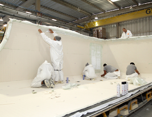 Le Groupe offre des produits de finition de surface de classe A à C. Peinture, gelcoat, texture, mat, finition semi-brillante ou brillante, etc.